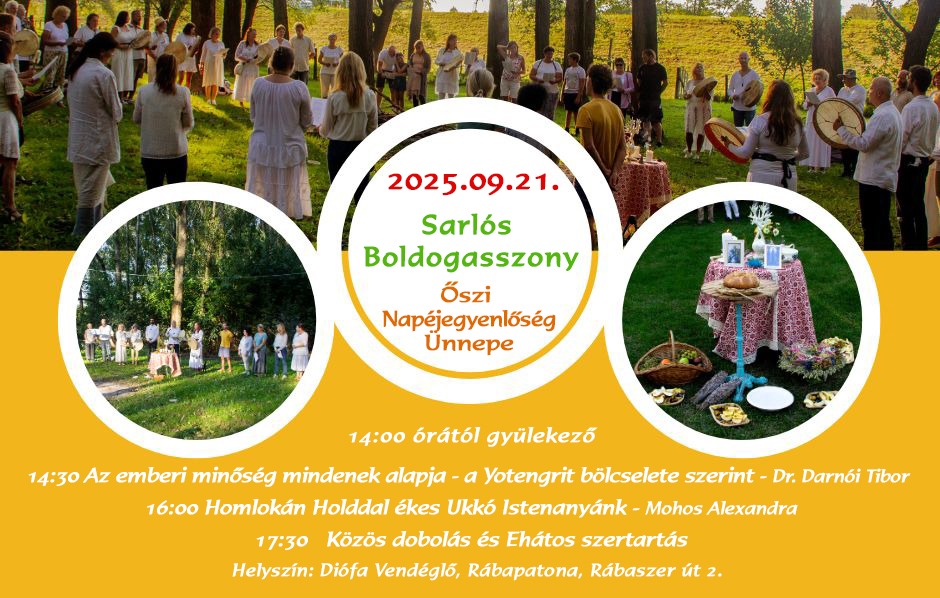 Szeretettel hívunk az Őszi Napéjegyenlőség – Sarlós Boldogasszony Ünnepre 2025. szeptember 21-én vasárnap Rábapatonán a Diófa Vendéglőbe.