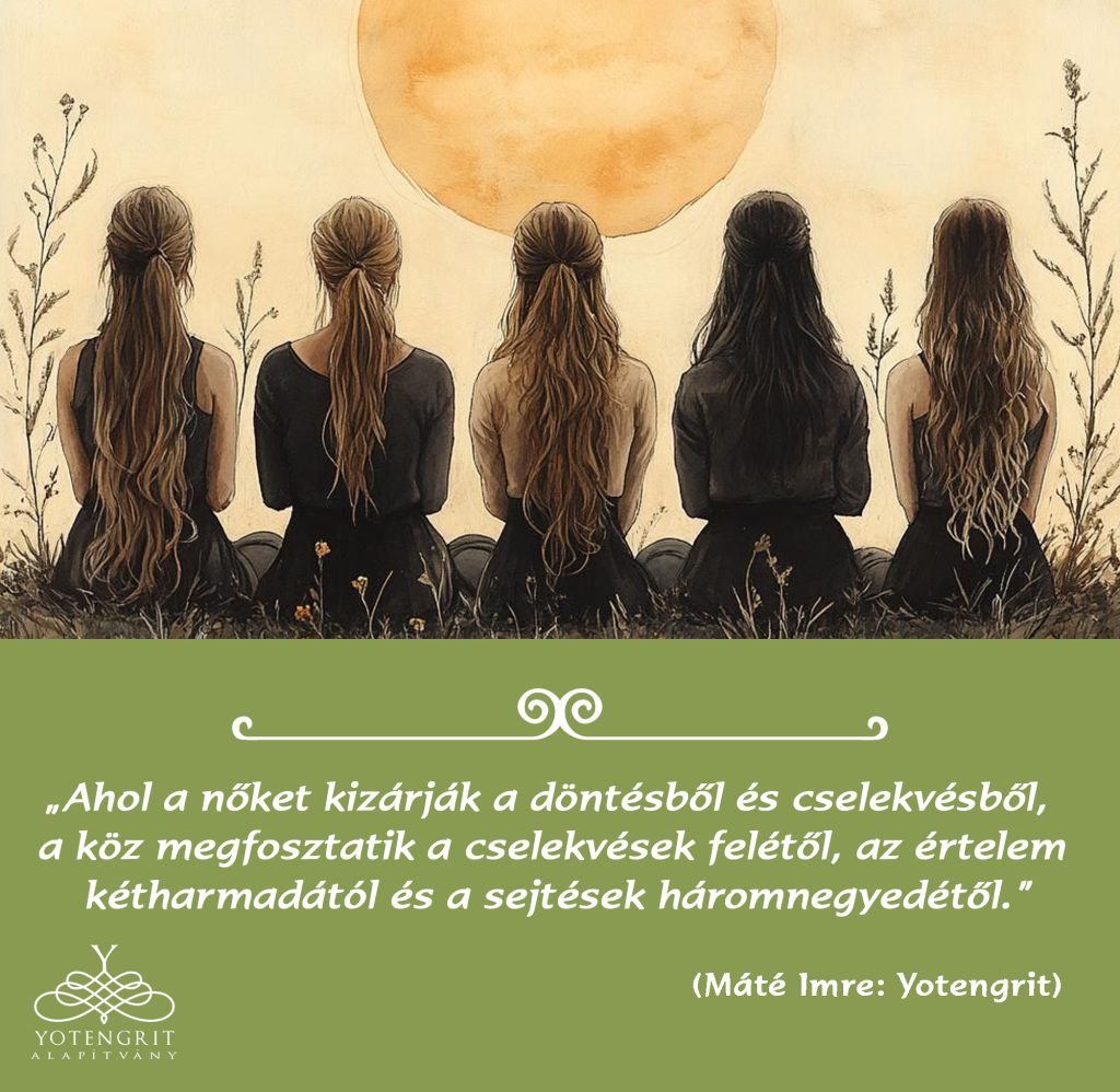 - A Hét bölcsessége“Ahol a nőket kizárják a döntésből és cselekvésből, a köz megfosztatik a cselekvések felétől, az értelem kétharmadától és a sejtések háromnegyedétől.” (Máté Imre: Yotengrit)