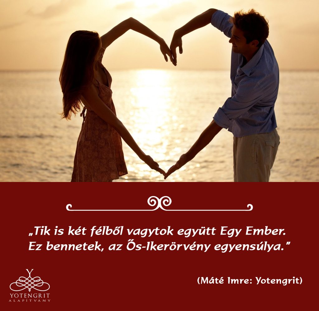 - A hét bölcsessége„Tik is két félből vagytok együtt egy ember. Ez bennetek, az ős-ikerörvény egyensúlya.” (Máté Imre Yotengrit)