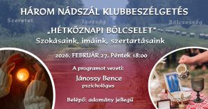 A Három Nádszál Klub keretein belül szervezünk előadásokat, beszélgetéseket és gyakorlati